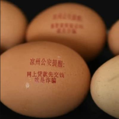甘肃武威警方将反电诈标语印刷在了超市的鸡蛋上,这些标语不但简短醒目,群众天天能接触到,再加上又给起了个好听的名字“反诈蛋”,很快就被大家传开,反电诈宣传收到很好的宣传效果。