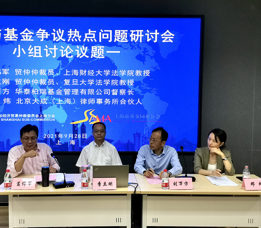 2021年9月28日,由中国国际经济贸易仲裁委员会 (以下简称“贸仲”)上海分会暨贸仲上海证券期货金融国际仲裁中心和上海市基金同业公会联合主办的“仲裁与基金争议热点问题”研讨会在上海通过线上与线下相结合的方式成功举办。近70余位来自上海证监局、贸仲、同业公会代表以及基金公司法务或合规人员、仲裁员、律师、学者等共同参与了研讨。