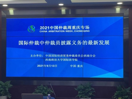 2021年9月13日,“国际仲裁中仲裁员披露义务的最新发展”专题讲座在重庆成功举行。本次讲座是2021中国仲裁周系列活动之一,由中国国际经济贸易仲裁委员会(贸仲)西南分会、西南政法大学国际法学院主办。