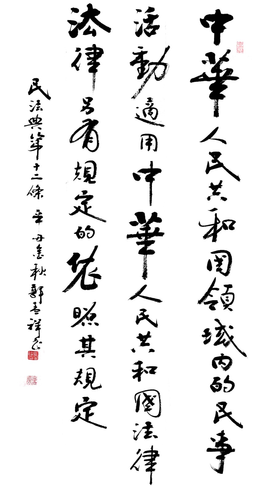 民法典第十二条 中华人民共和国领域内的民事活动,适用中华人民共和国法律。法律另有规定的,依照其规定。
