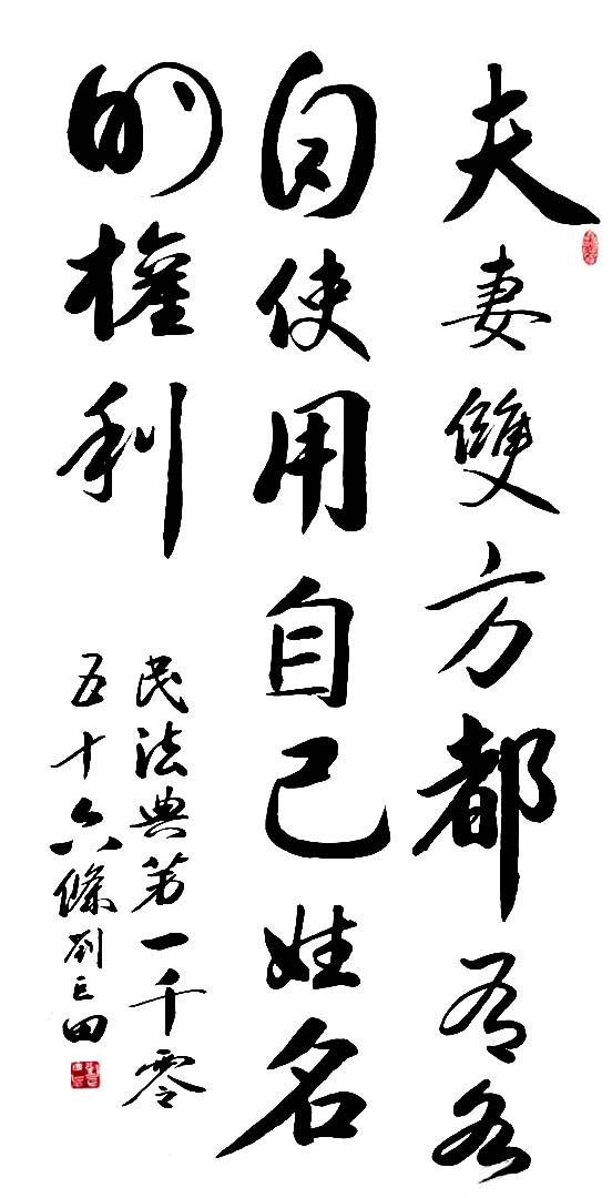 民法典第一千零五十六条 夫妻双方都有各自使用自己姓名的权利。