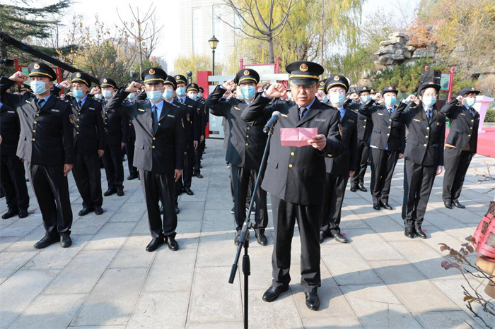 11月29日,2021年山东省暨济南市“宪法宣传周”活动启动仪式在历下区洪山宪法主题公园举行。活动现场,来自历下区的64名行政执法人员进行了集体宣誓。
