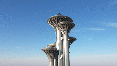 △首钢滑雪大跳台的造型设计融入了敦煌壁画中的“飞天”元素,建筑曲线优美、流畅。(总台央视记者刘岳拍摄)