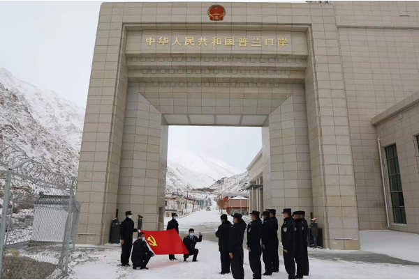 1月24日,在西藏自治区阿里地区东南部的普兰口岸,一面鲜艳的五星红旗在寒风中翩飞,普兰县的税务干部们庄严地站立在界碑旁,与口岸民警一道,礼敬国旗、高唱国歌,在边境线上豪情满怀,高扬中国税务精神。
