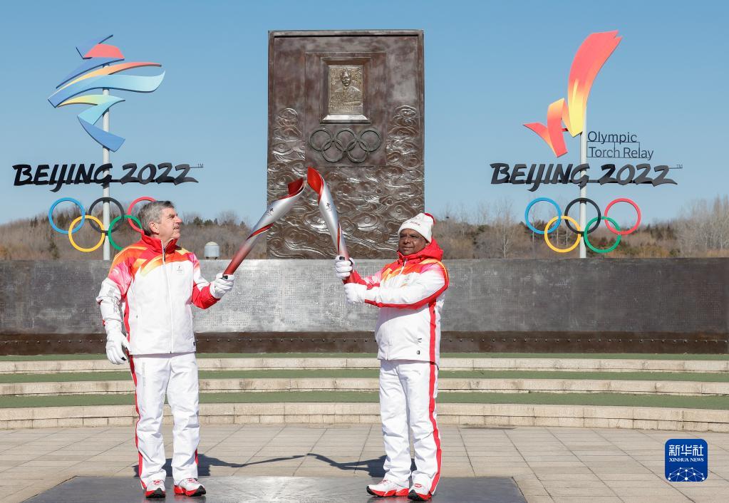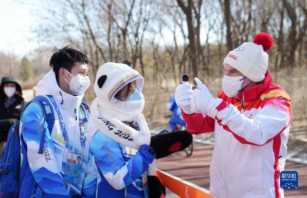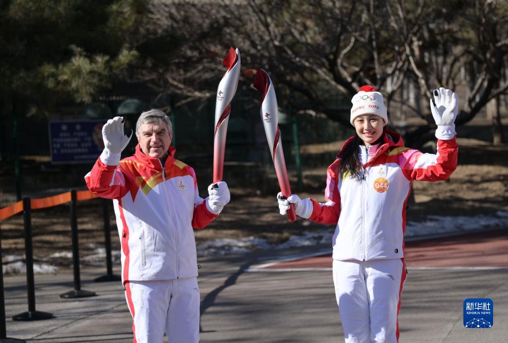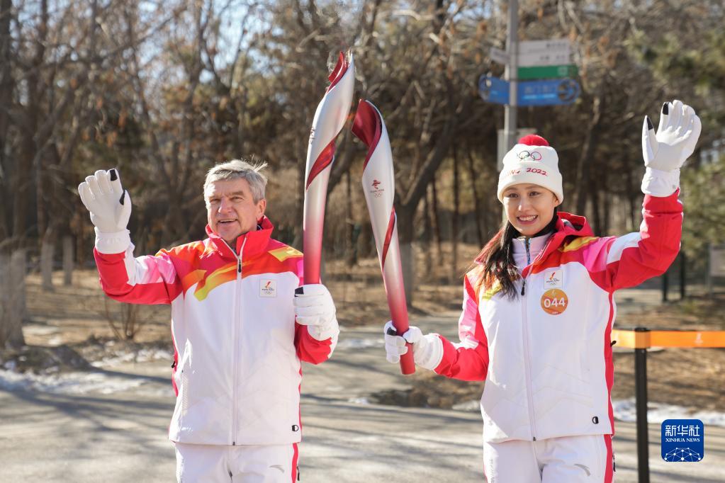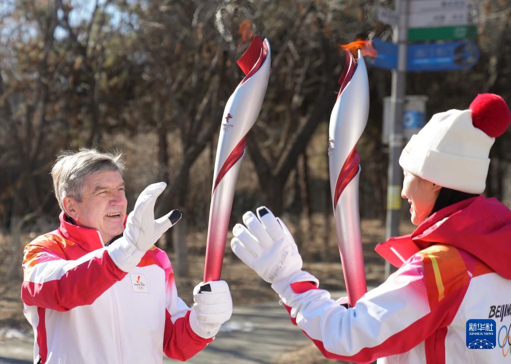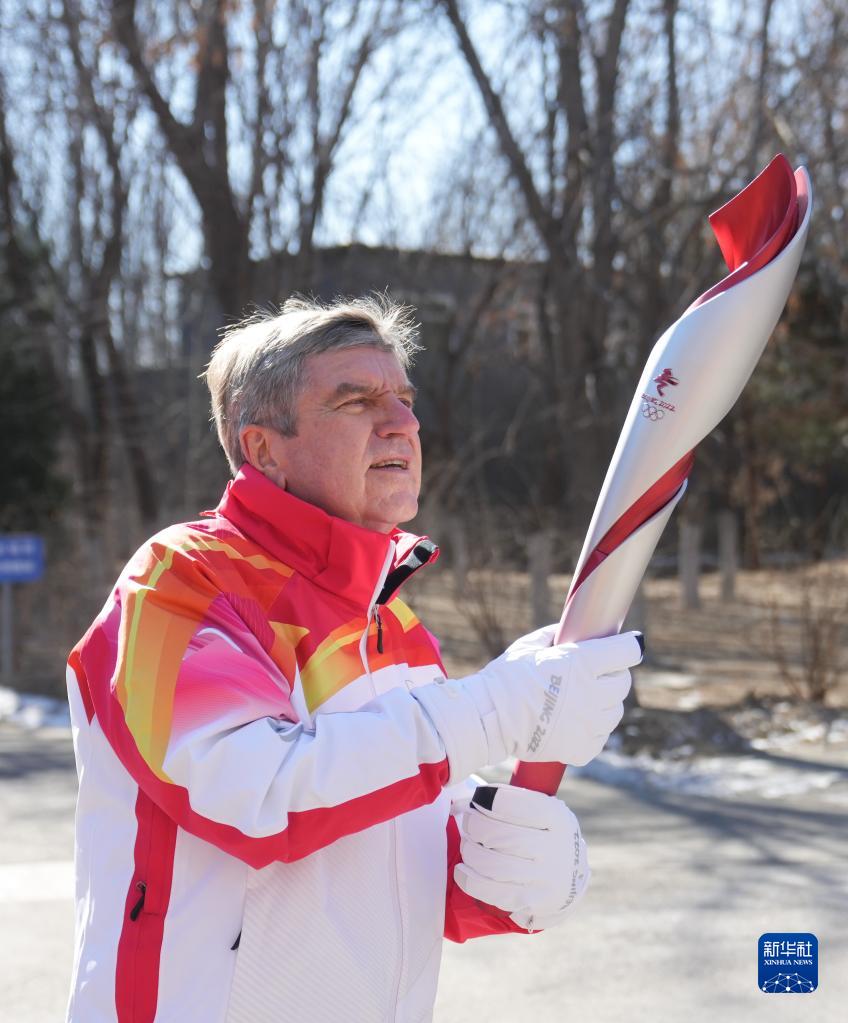 2月4日,国际奥委会主席巴赫在火炬传递中。