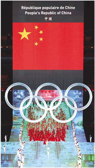 2月4日晚,第二十四届冬季奥林匹克运动会开幕式在北京国家体育场举行。图为中国代表团在开幕式上入场。 新华社记者 杨磊 摄