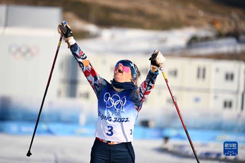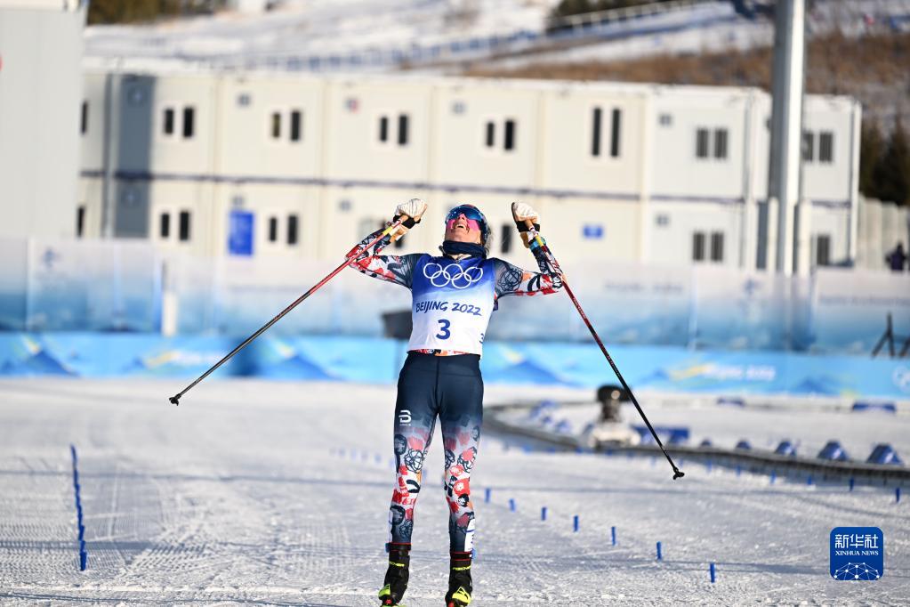 当日,北京2022年冬奥会越野滑雪女子双追逐(7.5公里传统技术+7.5公里自由技术)比赛在国家越野滑雪中心举行。该项目产生本届冬奥会首枚金牌。