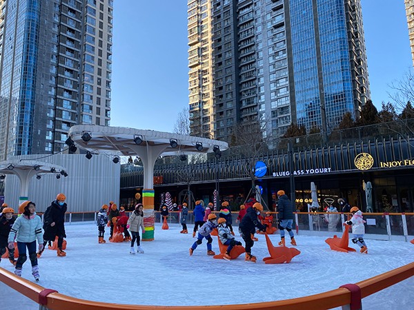2月4日,市民在北京市朝阳区三元桥附近的一家冰场享受冰雪运动乐趣。