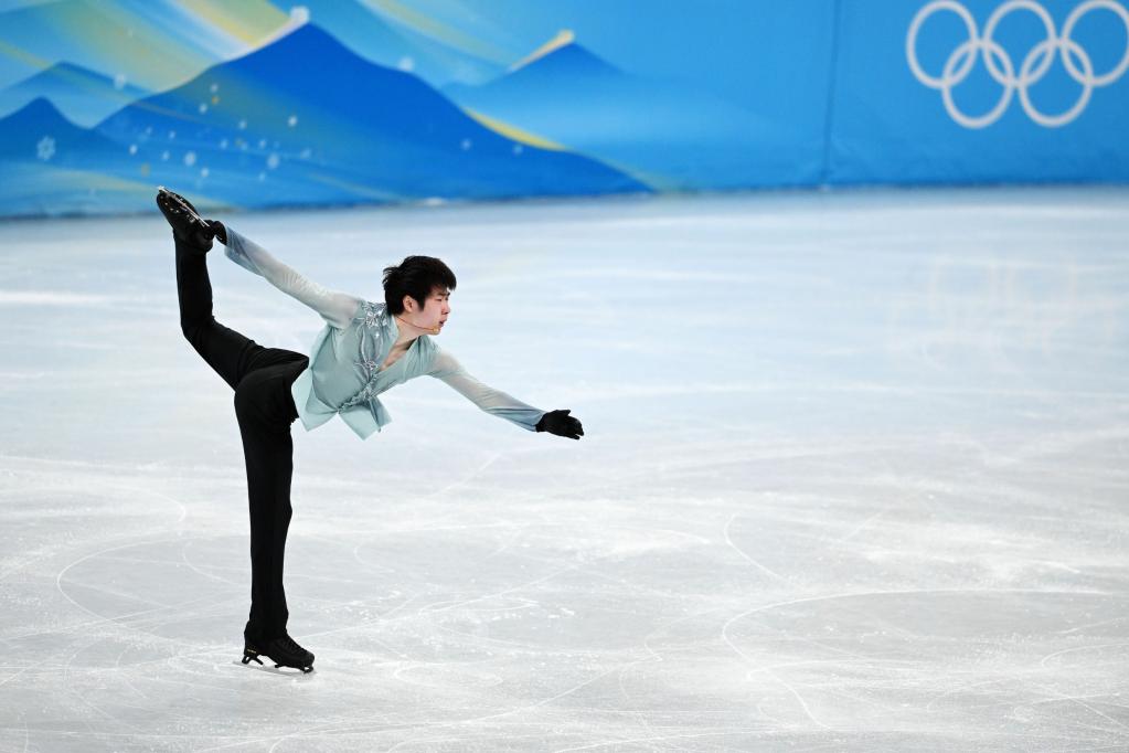 2月8日,中国选手金博洋在男单短节目比赛中。新华社记者李一博摄