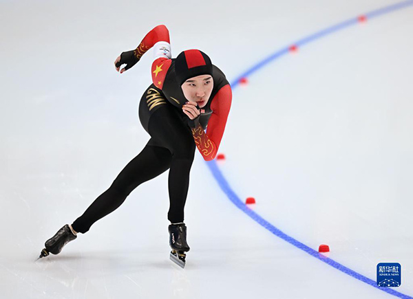 当日,北京2022年冬奥会速度滑冰女子5000米比赛在国家速滑馆“冰丝带”举行。