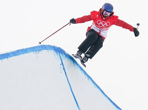 2月17日,谷爱凌在自由式滑雪女子U型场地技巧资格赛中。 新华社记者肖艺九摄