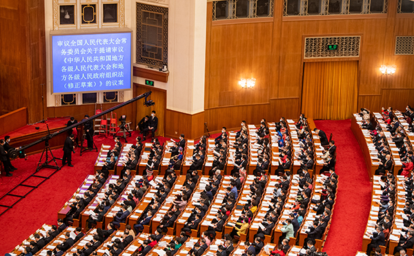 3月5日,十三届全国人大五次会议开幕,地方组织法修正草案提请大会审议。 本报记者 王建军 摄