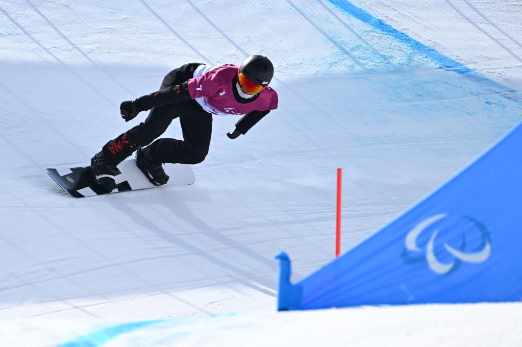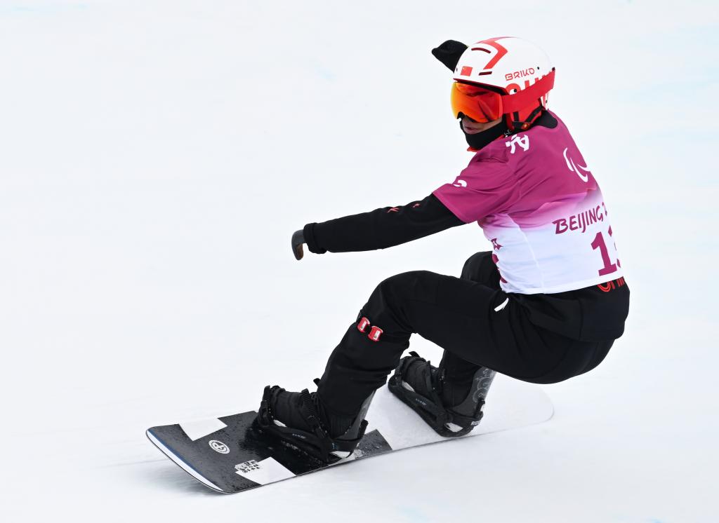 2021年3月20日,在冬残奥会训练基地,国家冬残奥单板滑雪队运动员朱永钢在训练