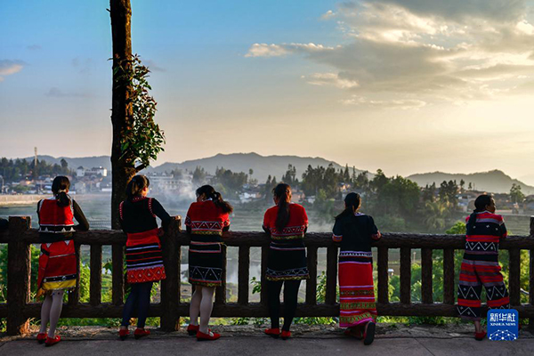 云南省腾冲市清水乡三家村中寨司莫拉佤族村村民在广场上休息(2020年5月15日摄)。新华社记者 胡超 摄