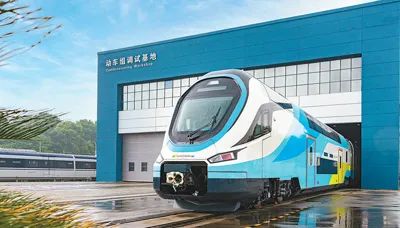 中国首列出口欧洲的双层动车组在位于湖南省株洲市的中车株机公司下线。