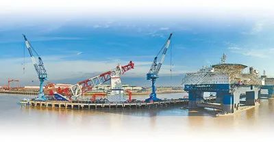 大型海工装备“蓝鲸一号”正在山东烟台进行维护保养。