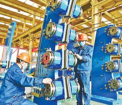 在河南省洛阳市中信重工车间内,工人忙着赶制矿山装备产品订单。