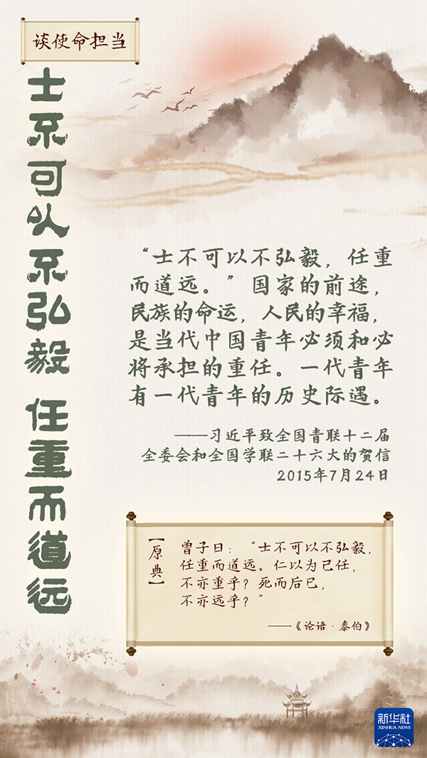 党的十八大以来,习近平总书记经常引用古语勉励青年,与他们谈人生理想、谈求知求学、谈使命担当。