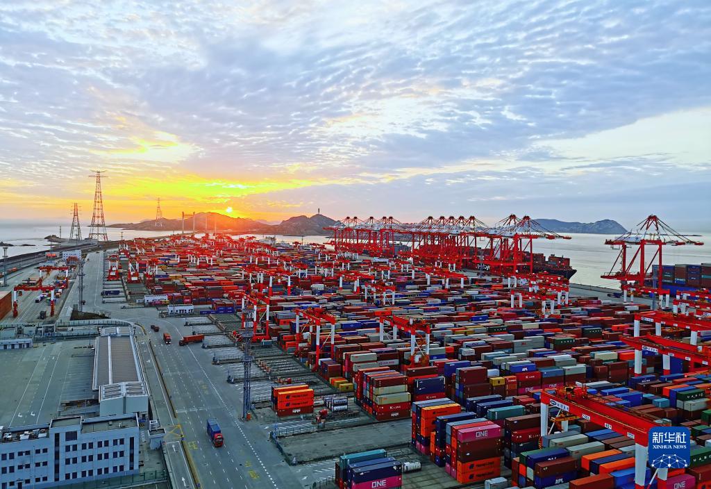 这是1月1日拍摄的洋山港的新年日出。新华社发