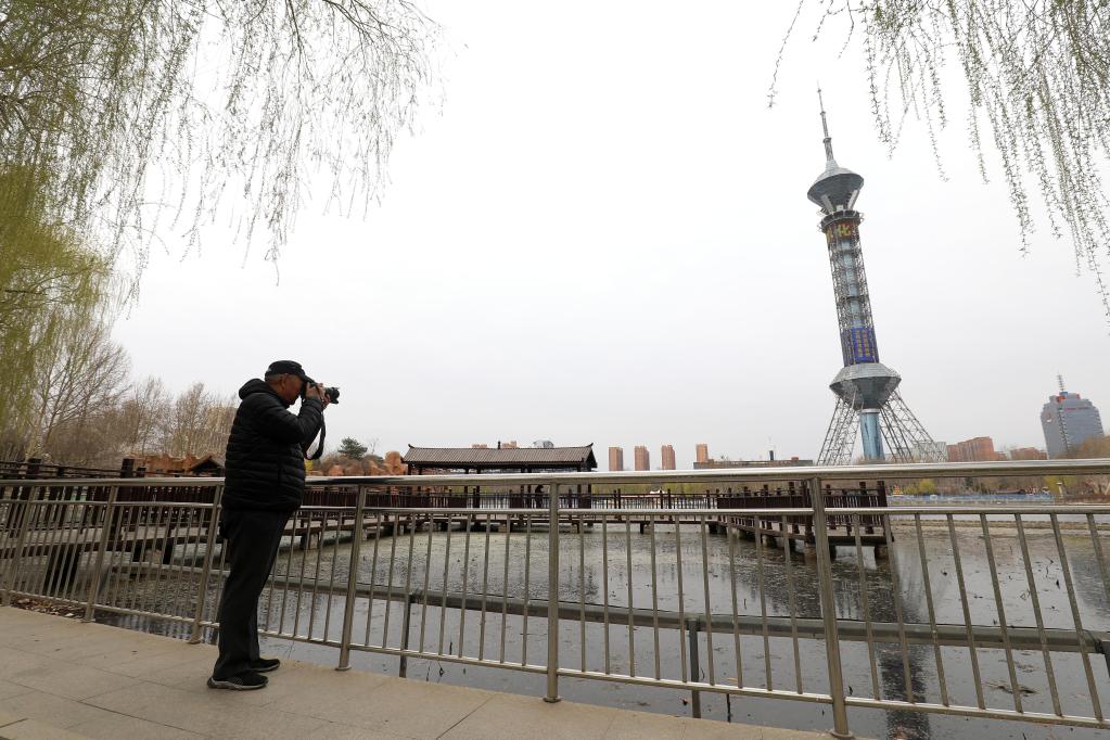 3月18日,王汝春在石家庄市裕华区世纪公园拍照。(受访者供图)