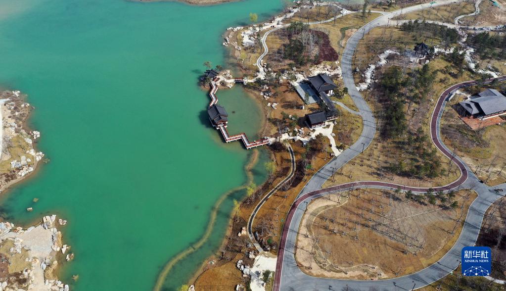 这是3月28日拍摄的雄安新区悦容公园景色(无人机照片)。新华社记者 骆学峰 摄