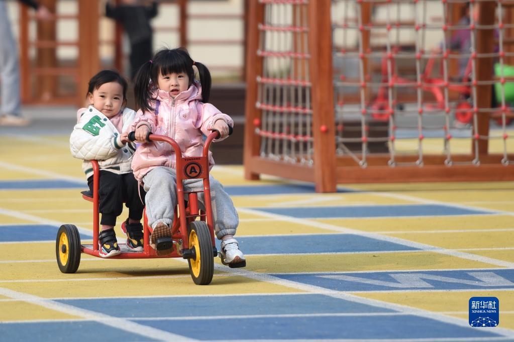 小朋友在雄安容和双文幼儿园玩耍(3月23日摄)。新华社记者 骆学峰 摄