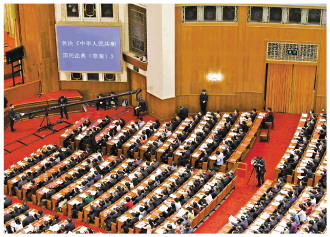图为2020年5月,十三届全国人大三次会议通过了《中华人民共和国民法典》,自2021年1月1日起施行。这是我国第一部以法典命名的法律。 居杨 摄