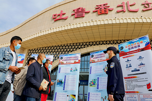 为深入普及国家安全教育知识及法律法规,4月12日,哈密铁路公安处吐鲁番北站派出所会同吐鲁番市国家安全局在吐鲁番北火车站开展全民国家安全教育日普法宣传活动。