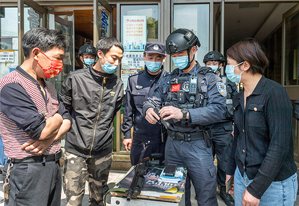 图为4月8日,武义县公安局巡特警大队民警向辖区群众开展国家安全宣传