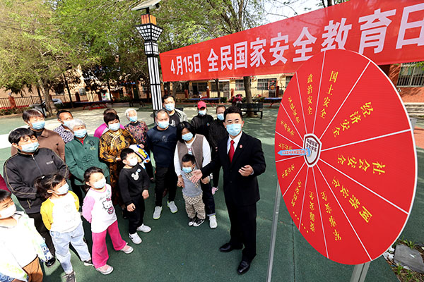 ① 4月14日,山东省枣庄市市中区人民法院组织法官走进社区,开展形式多样的主题宣传教育活动,提高居民国家安全意识。图为法官在龙山路街道荣华里社区向居民讲解国家安全知识。法治日报通讯员 吉喆 摄