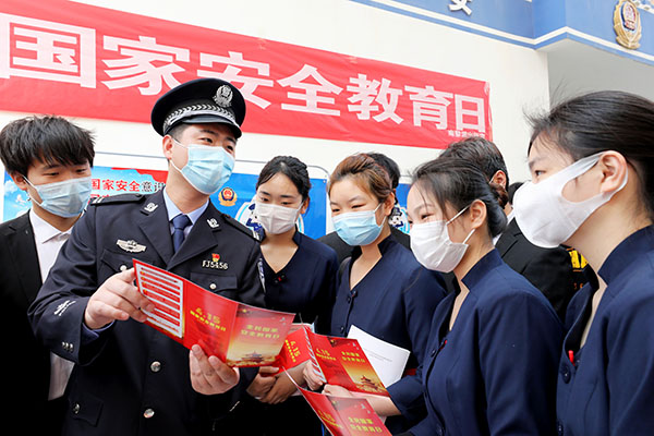 ② 4月14日,安徽省淮北市公安局南黎派出所组织民警深入辖区开展国家安全教育宣传,向广大群众宣传讲解国家安全法、网络安全法等国家安全相关法律,营造维护国家安全的浓厚氛围。图为民警向群众讲解如何维护国家安全。法治日报通讯员 李鑫 摄