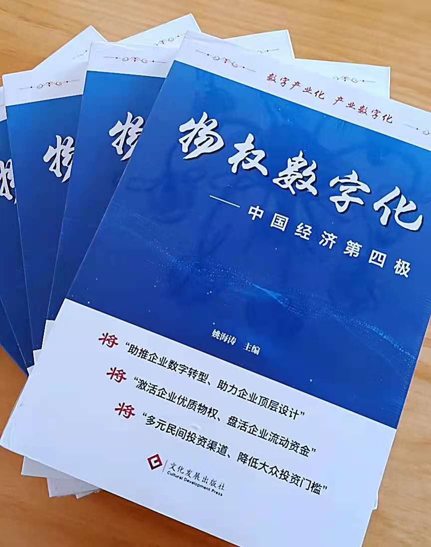 前不久,《物权数字化—中国经济第四极》专著首发式在广西巴马举行,该书由海南科技大学物权数字化课题组秘书长姚海涛主编、华盛绿色工业基金会副秘书长郑占淮博士等专家学者联合撰写。该书由文化发展出版社出版,全国新华书店发行,是国内首部关于“物权数字化”的论述专著,首次提出“物权数字化”新概念、新业态、新动能理论学术,专著对物权资产的流动性及物权篇条目进行了详析。