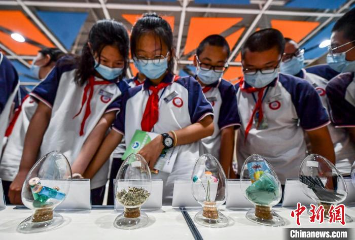 学生们观看毒品模型,了解毒品的种类和形状。 刘新 摄