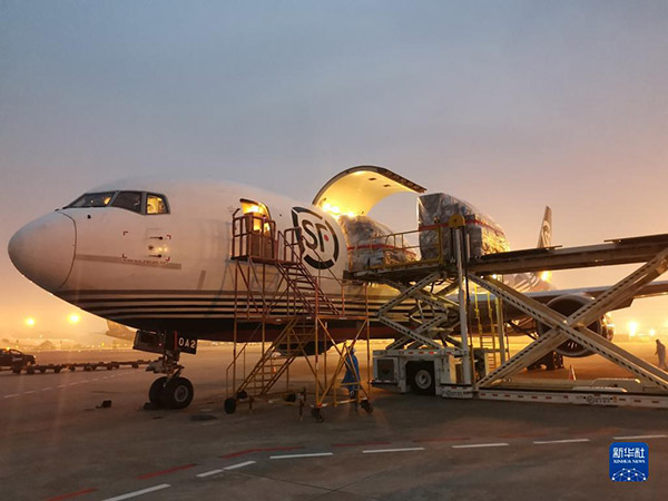 一架载有45吨物资的顺丰航空货运包机从深圳宝安国际机场飞往香港,深港两地货运包机航线正式开通(2022年3月19日摄)。新华社发