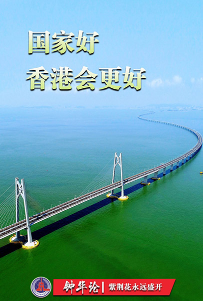 紫荆花开正烂漫,乘借东风上青云。在“一国两制”下,香港不仅能够分享内地的广阔市场和发展机遇,而且能够在国家推动形成全面开放新格局中占得先机。坚守“一国”之本、善用“两制”之利,在国家发展大局中找准定位、扮演更积极角色,香港定能培育新优势、发挥新作用、实现新发展,让发展成果更多惠及广大市民。
