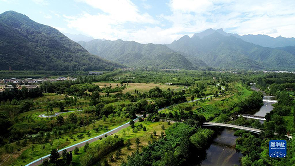 这是陕西省西安市长安区秦岭违建别墅“群贤别业”拆除后建设的秦岭和谐森林公园(2019年7月26日摄,无人机照片)。新华社记者 刘潇 摄