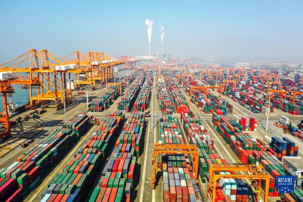 这是广西钦州港集装箱码头(2021年1月14日摄,无人机照片)。新华社记者 曹祎铭 摄