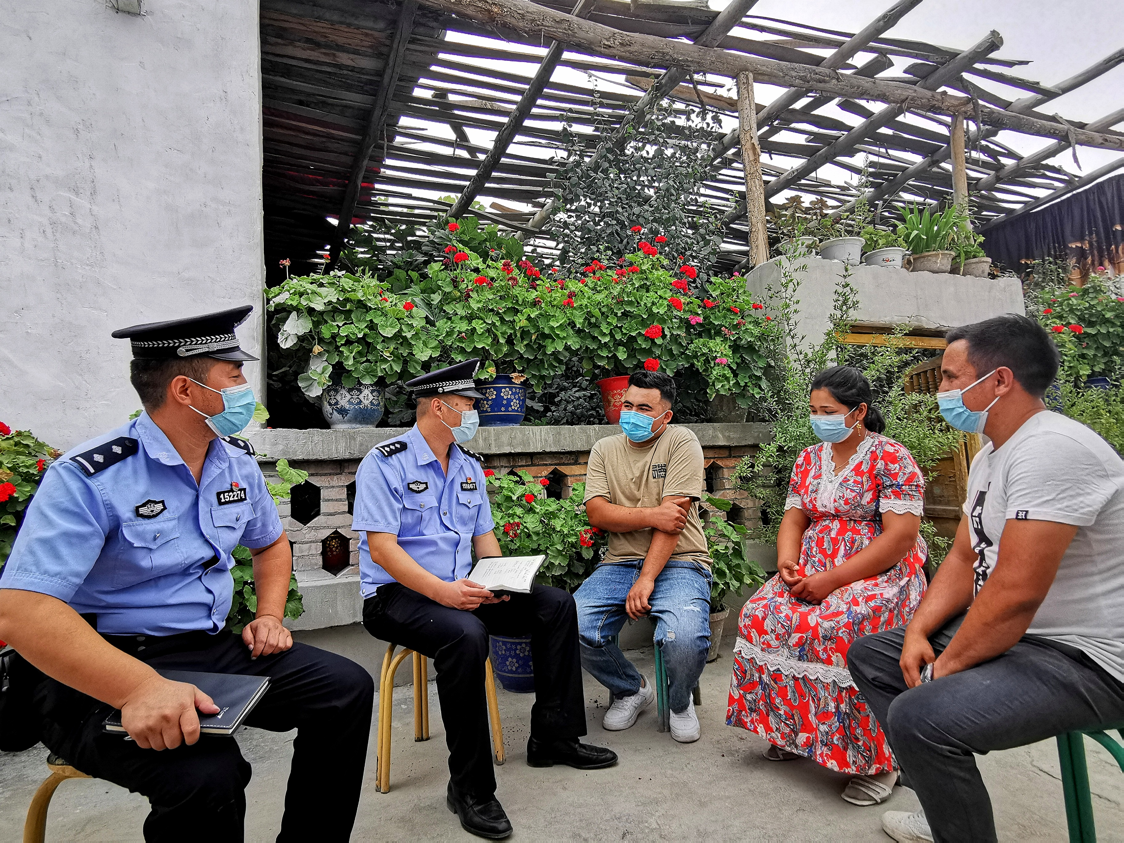 为进一步密切警民关系,加强警民联动,提高辖区群众安全感和满意度,连日来,新疆阿克陶县公安局巴仁派出所民警进村入户开展走访工作,广泛听取辖区群众在治安防控工作方面的意见和建议,鼓励广大群众积极建言献策,同时,排查化解各类矛盾纠纷,增强辖区群众的防盗、防骗意识,提升群众的防范水平,促进辖区治安秩序和谐稳定。图为7月29日,派出所民警走访辖区群众,了解社情民意,征求对公安工作的意见和建议。