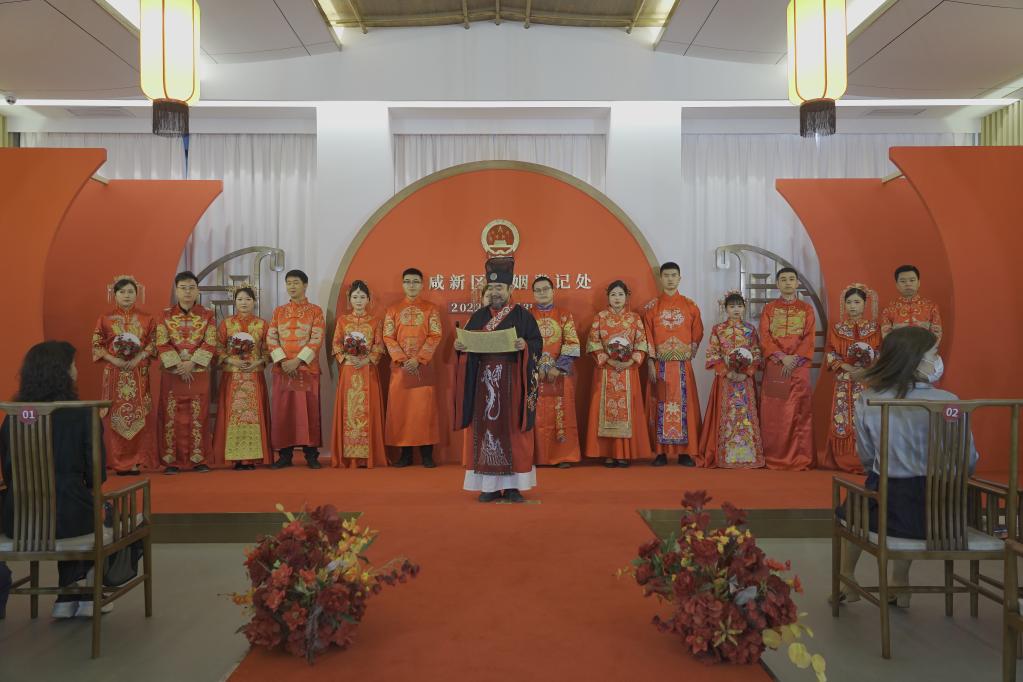 新华网西安7月31日电(记者 李亚楠)7月31日,在风景优美、浪漫旖旎的昆明池·七夕公园,7对新人举行了热闹甜蜜的集体婚礼。当天,西安市西咸新区婚姻登记便民服务窗口在昆明池·七夕公园正式启用。