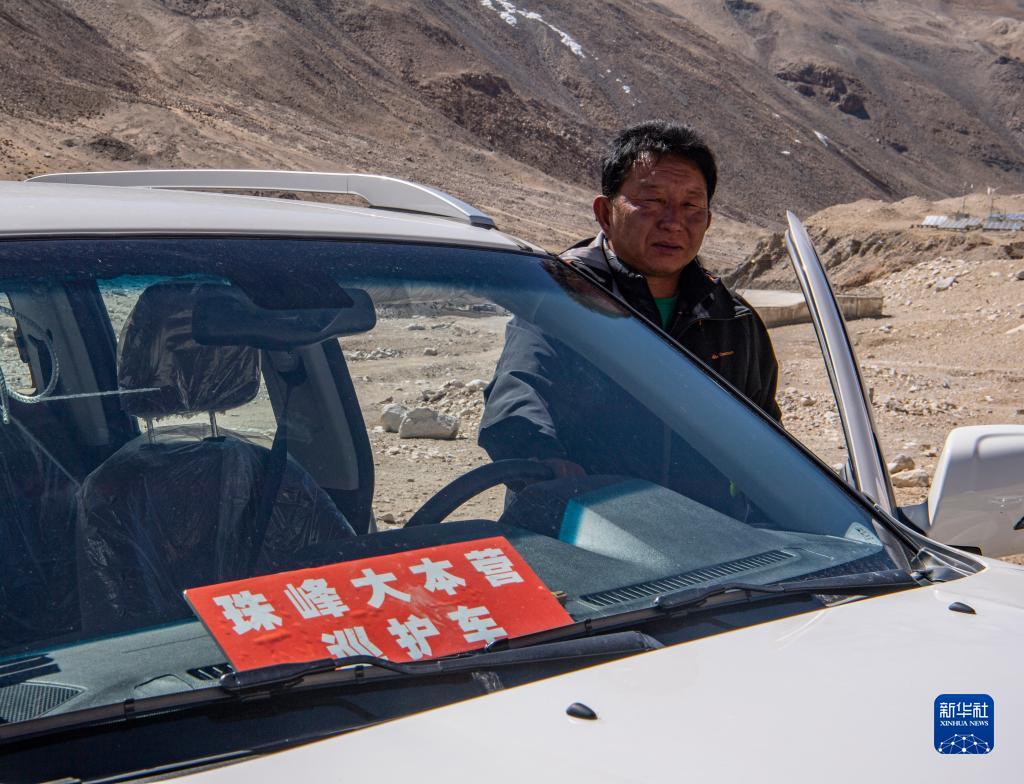 拉巴次仁驾驶巡护车在珠穆朗玛峰国家级自然保护区内巡逻(2020年5月15日摄)。新华社记者 孙非 摄