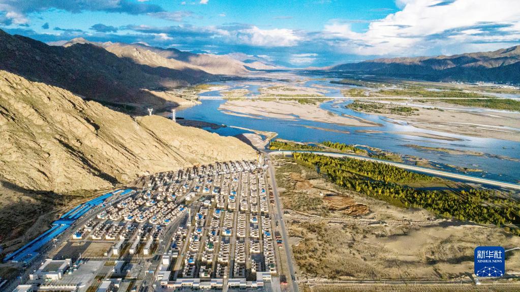 这是位于西藏山南市贡嘎县的森布日搬迁安置点(2020年9月24日摄,无人机照片)。新华社记者 孙非 摄