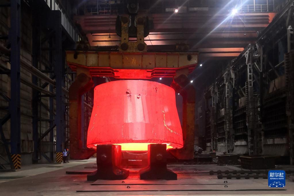 中国一重制造的世界最大异形加氢筒体锻件(2022年8月30日摄)。新华社发(刘凯泉 摄)
