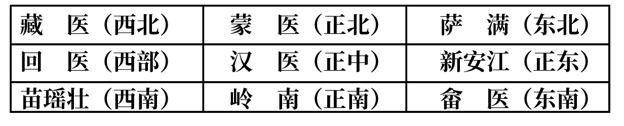 A.中国版图民族医学体系“九宫格”: