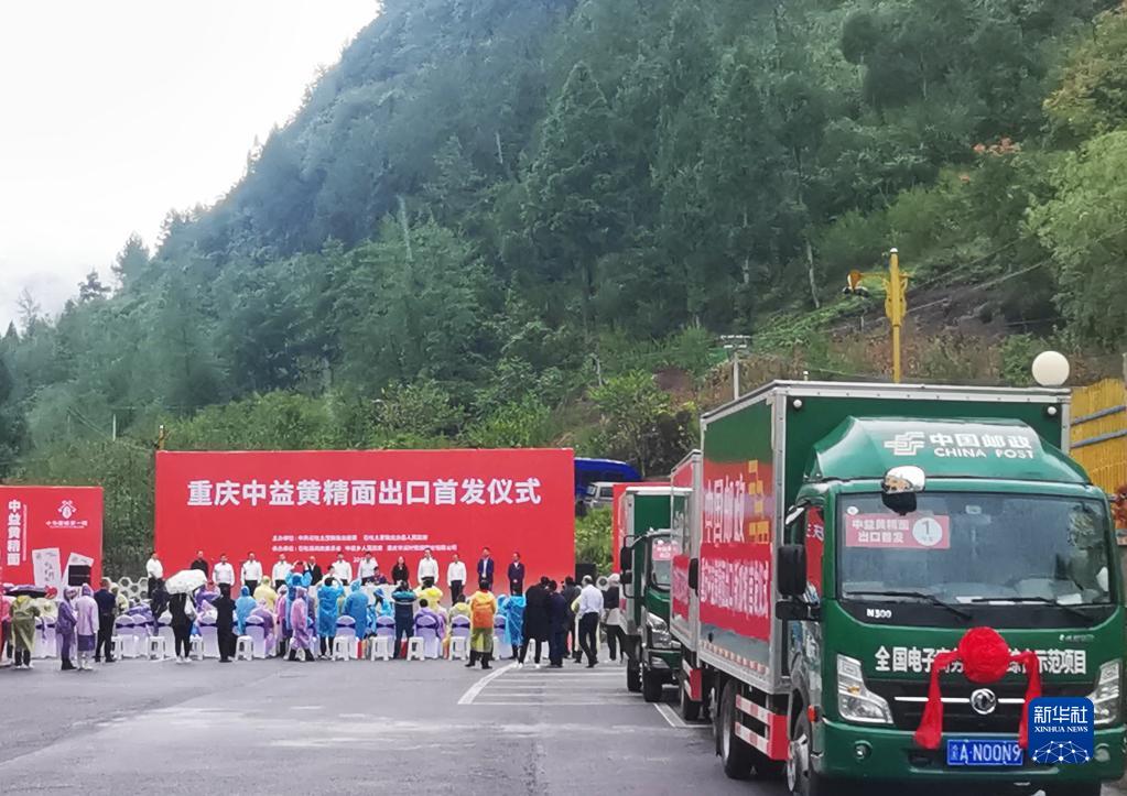 9月23日,在重庆市石柱土家族自治县中益乡华溪村,“中益黄精面”装车出发。新华社发(谭华祥 摄)