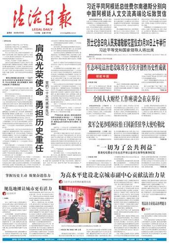 “生态环境系统要坚持用最严格制度最严密法治保护生态环境,依法深入打好污染防治攻坚战,推动建设人与自然和谐共生的美丽中国。”生态环境部党组书记孙金龙表示。