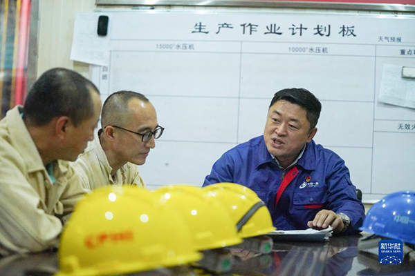 刘伯鸣在厂房内指挥作业(2022年9月17日摄)。新华社记者 王松 摄