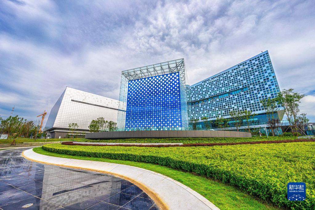 俯瞰四川天府新区兴隆湖畔的科研机构建筑大楼群(2022年9月21日摄,无人机照片)。新华社记者 江宏景 摄