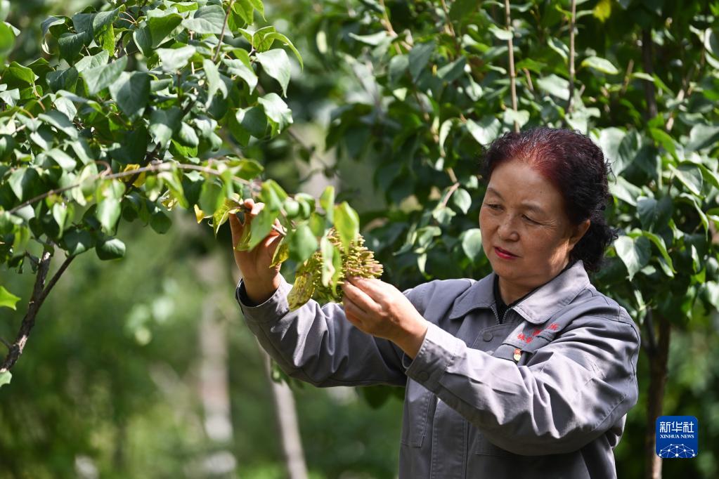 在青海省西宁市林业科学研究所的培育基地内,张锦梅在查看丁香生长情况(9月14日摄)。新华社记者 张龙 摄