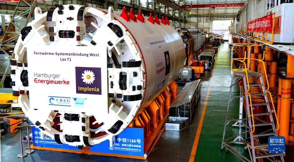 河南郑州,中铁工程装备集团有限公司的盾构总装车间里,一台四五米高的盾构机已经挂上出厂标识。这是中铁装备首台出口德国的盾构机。