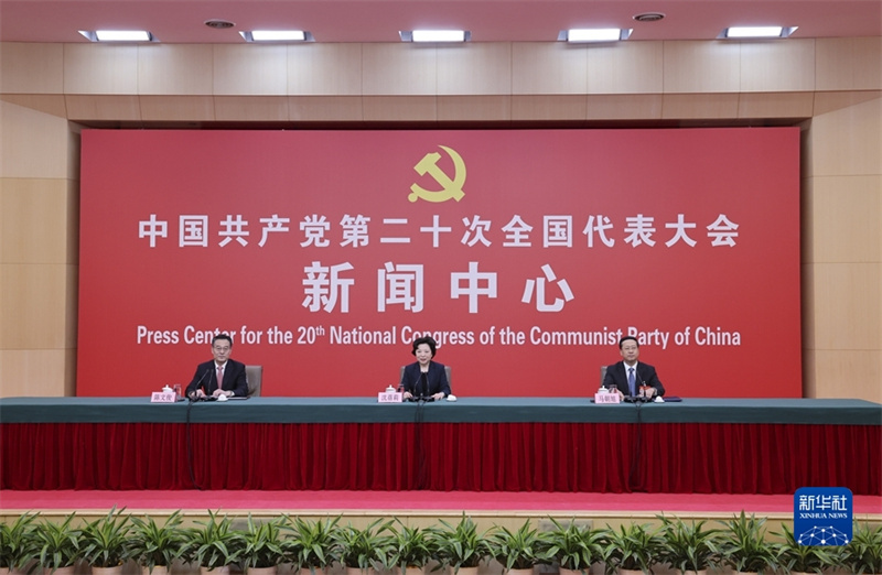 10月20日,中国共产党第二十次全国代表大会新闻中心举行记者招待会。中央对外联络部副部长沈蓓莉,外交部党委委员、副部长马朝旭围绕“习近平外交思想指引中国特色大国外交开拓前行”主题与记者交流。